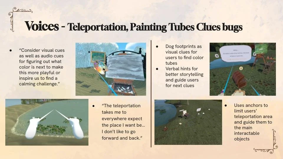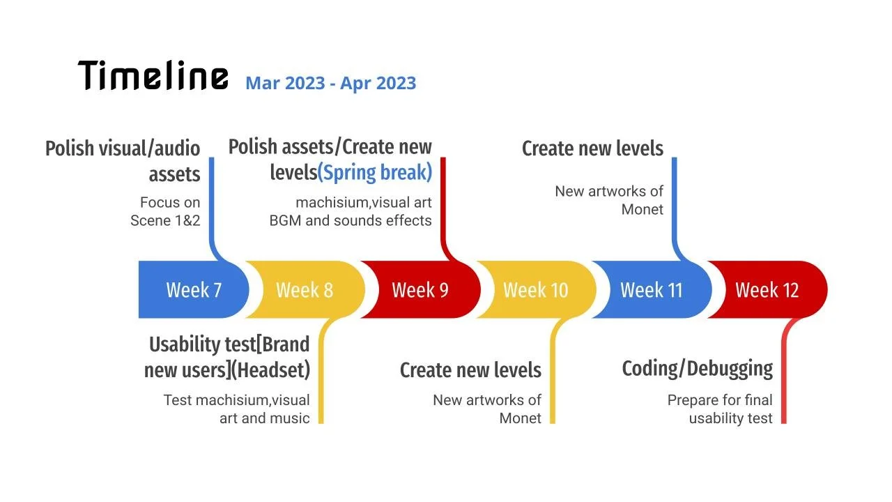 After three weeks of intensive brainstorming and research, I've devised an intriguing mechanism for users to unlock and progress through the game. Inspired by Monet's own experiences, I introduced a captivating plot twist involving Monet's mischievous puppy wreaking havoc in his studio. Drawing on historical accounts of Monet's struggles with cataracts, I integrated themes of perseverance and artistic vision into the narrative.